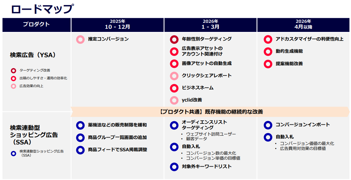 出典:LINEヤフー社アップデート情報 Yahoo!広告 ロードマップ資料(2025年度下期)掲載のお知らせ