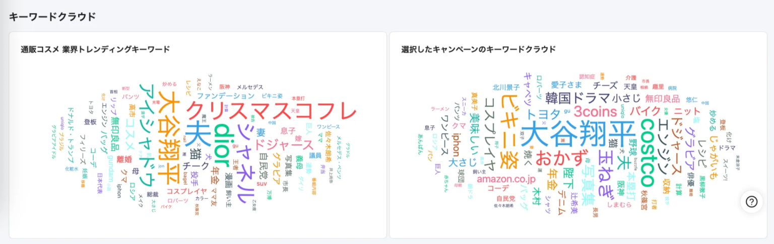 レポート下部の「この広告に関心を持った人が読んだニュース」セクションを廃止し、新たに「キーワードクラウド」機能を導入。