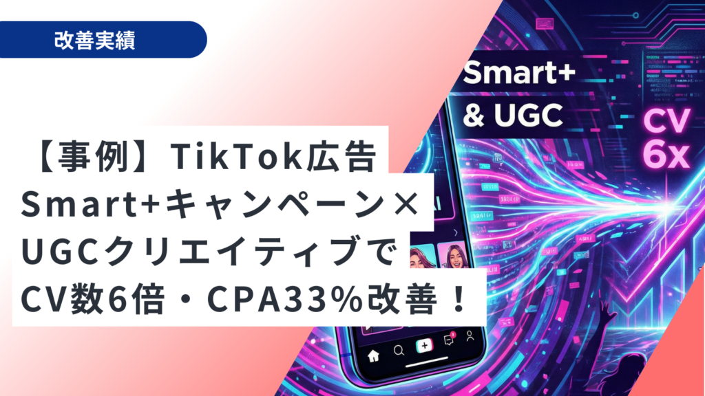 【事例】TikTok広告|Smart+キャンペーン×UGCクリエイティブでCV数6倍・CPA33%改善!