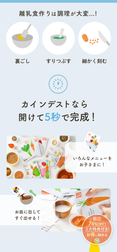 離乳食の悩みで共感を生み、商品を使うことで得られる解決策を提示