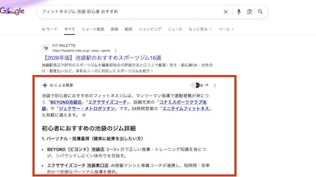 さらにGoogleは、対話型で検索できる「AI Mode」の対応範囲を拡大しており、ユーザーがAIとのやり取りを通じて「自分に合うジム」を絞り込むシーンも増えています。