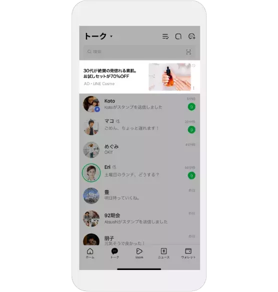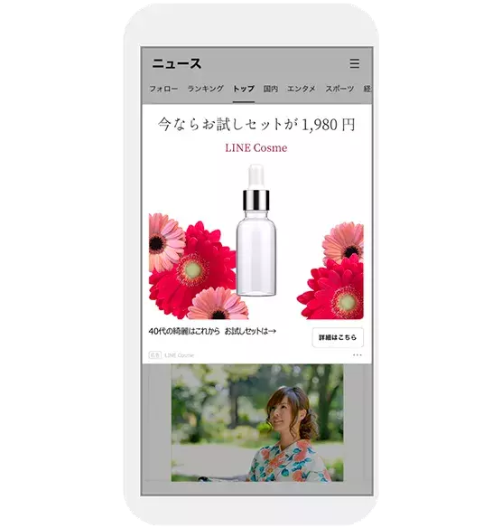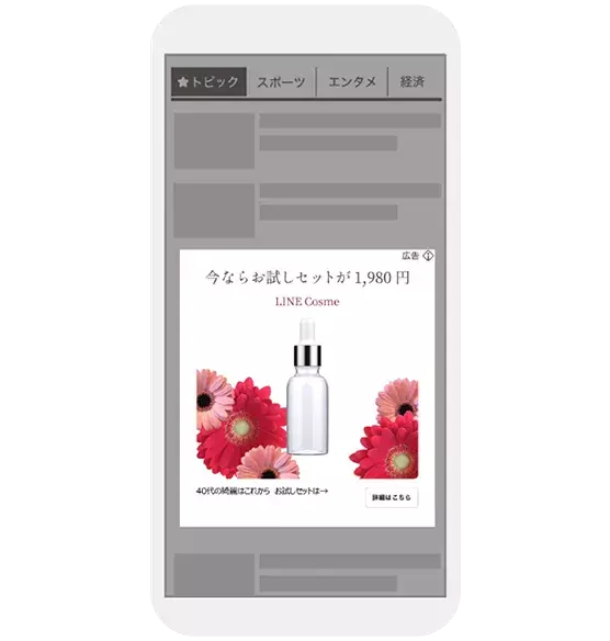 LINEアプリの中で最もユーザー数が多いトークリストやLINE NEWSなど、多彩な配信面に広告を掲載できます。