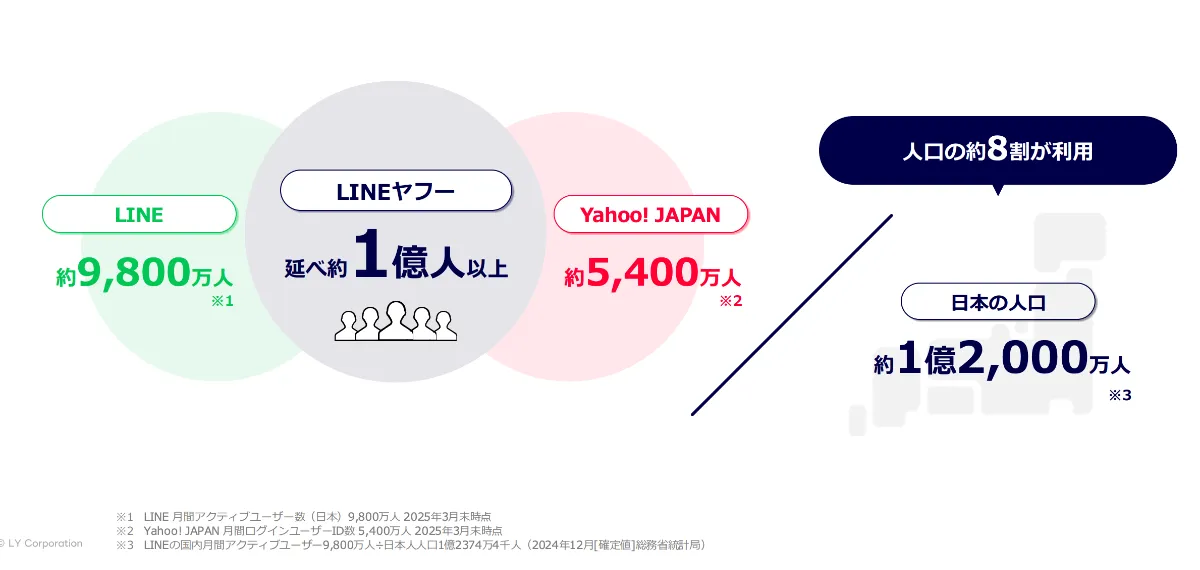 LINEの月間アクティブユーザー数は9,900万人(2025年6月末時点)であり、日本の総人口の約80%をカバーしています。