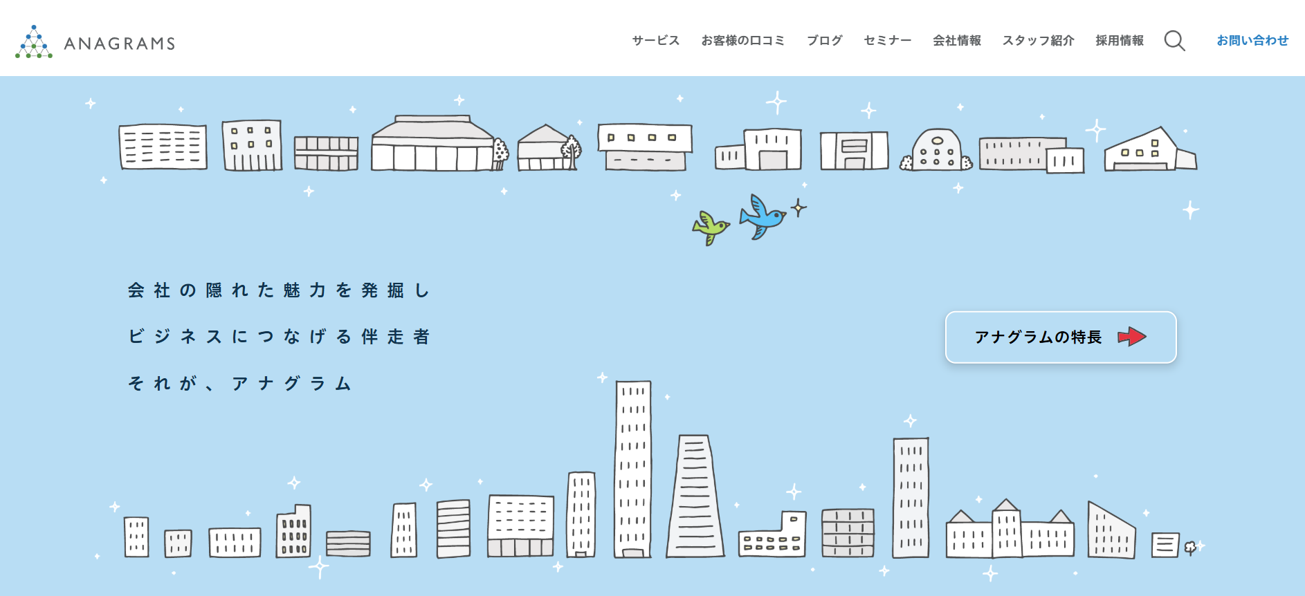 それぞれ特徴や得意分野が異なりますので、自社の目的や予算に合った代理店を選んでください。