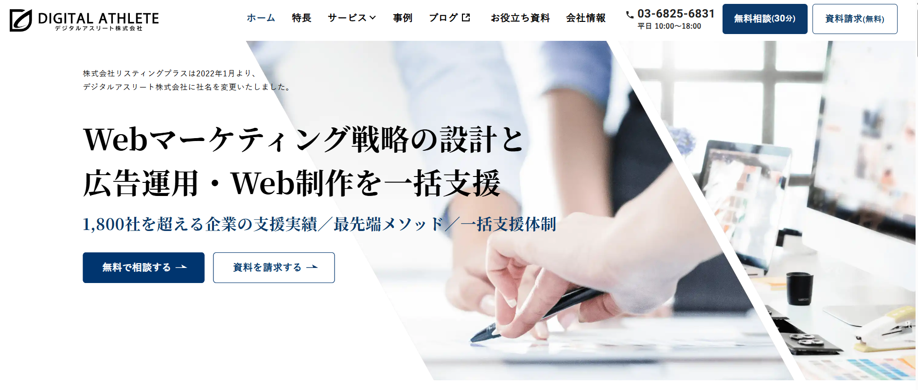 デジタルアスリート株式会社は、1,800社以上の支援実績を持つ広告代理店です。