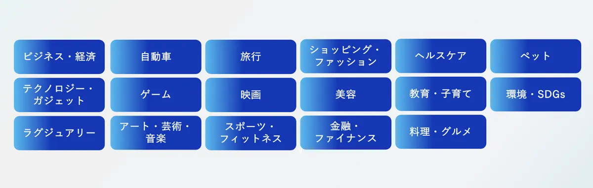 ヘルスケアや美容、スポーツなど17種類から自社の商品やサービスがターゲットとマッチするカテゴリを設定することが可能です。