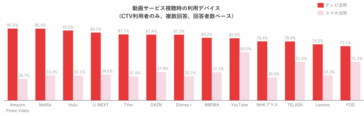 またリビングに設置されていることが多いテレビは、モバイルデバイスと比べて一人よりも複数人で視聴される傾向にあります。